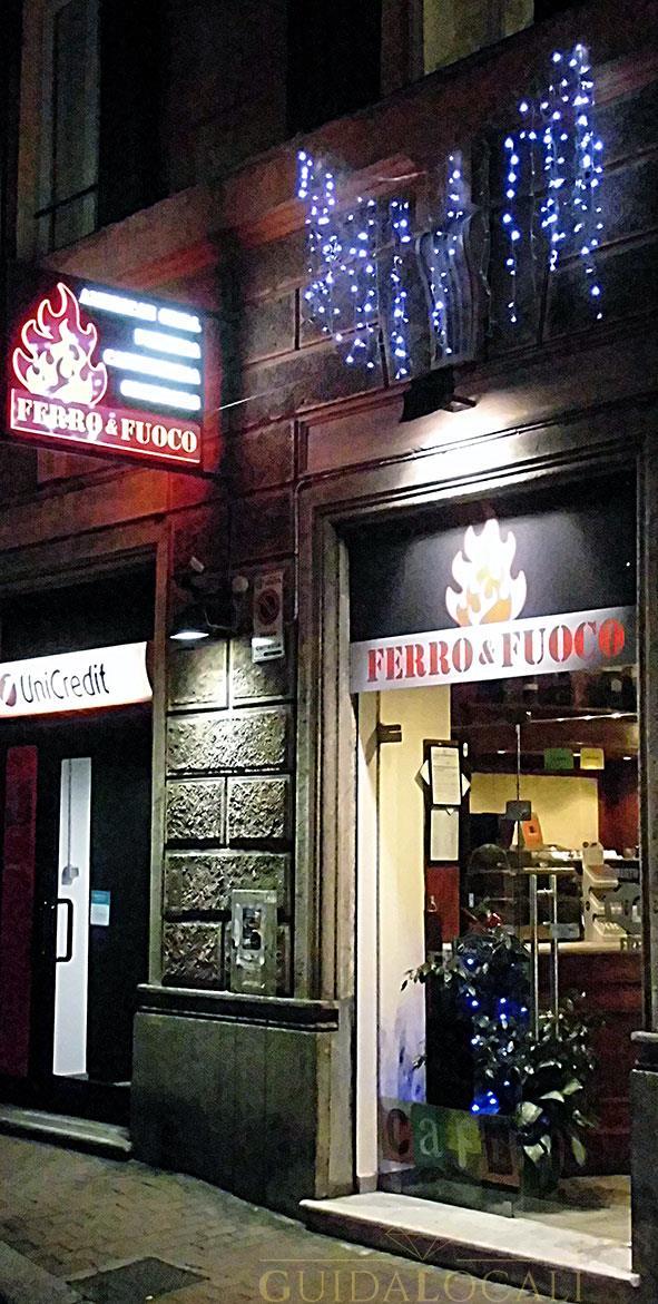 Ferro & Fuoco è l'american grill più rinomato di Pegli, proponendo ai clienti un locale adatto a tutte le tappe giornaliere, dalla colazione alla cena, passando per il super economico pranzo (incentrato sulla cucina ligure). La proposta culinaria principale è la cucina americana, espressa con il famoso metodo di cottura della carne Low & Slow (lenta e a bassa temperatura) ed affumicatura tipo Barbecue chiuso, con l’uso di cialde e trucioli di legno naturale di varie essenze a seconda dei piatti. Le carni, su tutte quella di Angus, sono cucinate utilizzando diversi metodi: la griglia per bistecche e grigliate con cottura espressa ed il sopraccitato metodo in affumicatore a 100 gradi per almeno 10 ore: per questi ultimi, la cottura è durante tutta la giornata ed all’atto dell’ordine, i prodotti che hanno raggiunto la cottura quasi ultimata, vengono finiti usando un forno multifunzione a vapore. I nostri piatti di carne sono preventivamente trattati da miscele di spezie di nostra esclusiva creazione (RUB) e realizzati espressamente per i vari tipi di carne (maiale, manzo, pollame). Le carni cotte alla griglia sono aromatizzate usando la miscela di SPG (Salt, Pepper, Garlic: sale, pepe ed aglio in polvere). L’Hamburgheria propone macinati tradizionali, ma realizzati utilizzando carni particolarmente pregiate ed esotiche quali il Canguro, il Kobe, il Cinghiale, il Cervo o il maiale Patanegra. Inoltre proponiamo alcune nostre esclusive macinazioni come “I nostri manezzi” cioè carne di manzo da noi tritata e lavorata unendo speciali miscele aromatizzanti quali la ‘Nduja o il cumino. La stessa originalità e qualità si può ritrovare anche nel menù delle pizze: al di là degli abbinamenti sempre originali delle nostre pizze Gourmet, creati con prodotti selezionati, l'impasto viene realizzato usando una farina speciale di "Tipo 1" semi-integrale e contenente germe di grano vitale. Disponiamo inoltre di un impasto alla Napoletana per pizze con cornicione importante e dell’impasto Multi-Cereale, più sottile e croccante. L'impasto è preparato con un anticipo di 48 ore, rendendolo più leggero e digeribile. Oltre alle classiche bevande analcoliche, è possibile usufruire di una scelta di birre e di vini. Essa include una selezione di oltre 40 birre speciali provenienti da tutti i continenti, a gradazione fino a 11,5 gradi e gusto intenso, adatte in particolare ad accompagnare i piatti di carne oltre a una selezionata lista di vini tra i più pregiati ma per tutti i borsellini. Ferro & Fuoco non è soltanto ristorante. Per le sue generose dimensioni (150 posti ben distanziati) è il luogo ideale per gustare una ricca apericena, oppure per organizzare cene aziendali ed eventi o feste insieme ai propri familiari e amici. Infine è importante sottolineare che da Giugno 2020 sono fruibili le consegne a domicilio di TUTTO il menù.